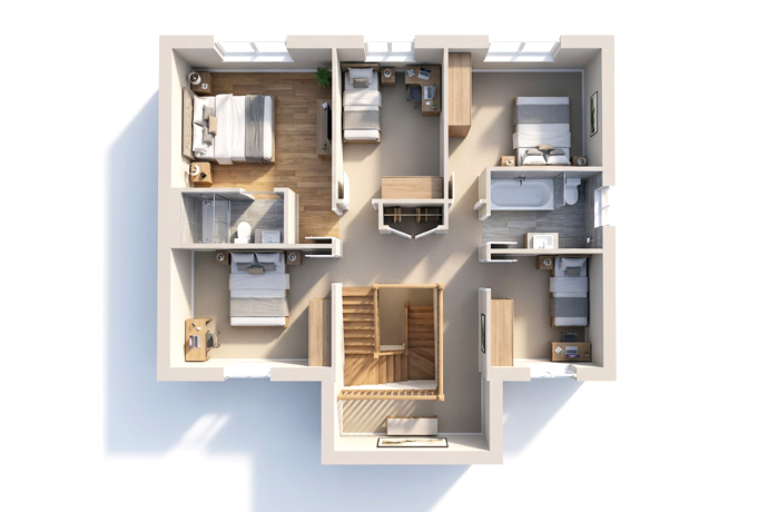 Photographs of empty rooms turned into furnished visuals and 360° tours
